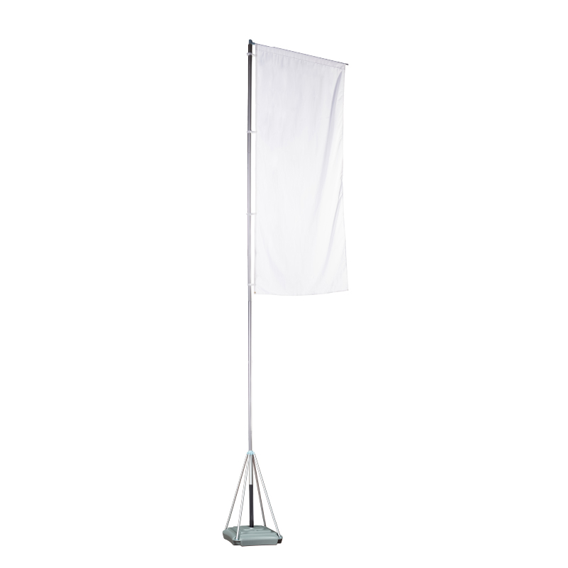 Mástil institucional de 6 metros con base de agua recomendado para banderas institucionales de exterior. El mástil Está confeccionado en aluminio y, gracias a su sistema en la base, es posible desmontarlo, abatirlo y recogerlo para cambiar la bandera o protegerlo ante fuertes vendavales.